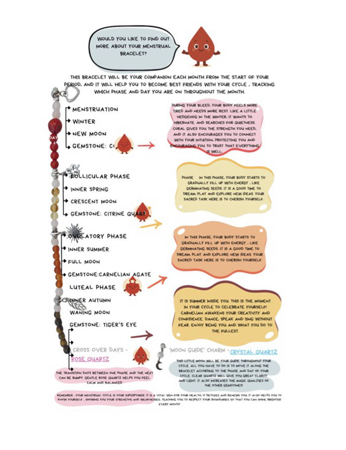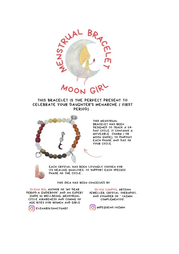 The Moon Girl bracelet has been lovingly created as the perfect present to celebrate your daughter's first period or Menarche. Each crystal has been carefully chosen by a gemstone therapist for it's healing properties to support each phase of the cycle.
